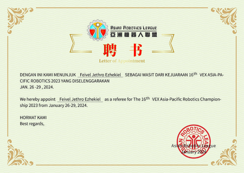 Serving as a referee in the VEX Robotics Competition provided me with a unique opportunity to engage with competitive robotics while developing my ability to enforce rules, assess technical performance, and manage conflict resolution under pressure. The role required a strong understanding of the competition rules, game structure, and scoring systems. It also demanded effective communication with participants, coaches, and fellow referees to maintain fairness and consistency throughout the event.